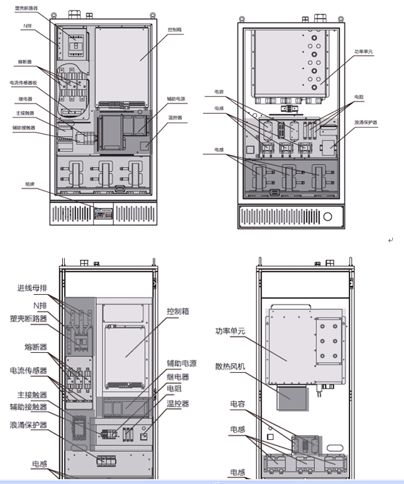 ·模塊化柜體結(jié)構(gòu),節(jié)奏合理,電纜可從裝置柜體頂部或底部進(jìn)入,安裝靈活。800mm寬的有源濾波柜相線(xiàn)濾波能力達(dá)到300A,零線(xiàn)濾波能力達(dá)到600A。