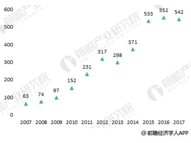 圖表3:2007-2017年低壓配電柜行業(yè)相關(guān)專利申請(qǐng)數(shù)量變化圖(單位:項(xiàng))