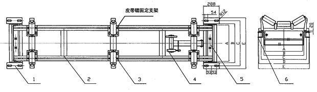 1:承重架 2:稱重橋 3:托輥架及托輥 4:測速機(jī)構(gòu)及測速傳感器 5:荷重傳感器 6:皮帶輸送機(jī)并配有JL500B稱重控制儀表 | |||||||||||||||||||||||||||||||||||||||||||||||||||||||||||||||||||